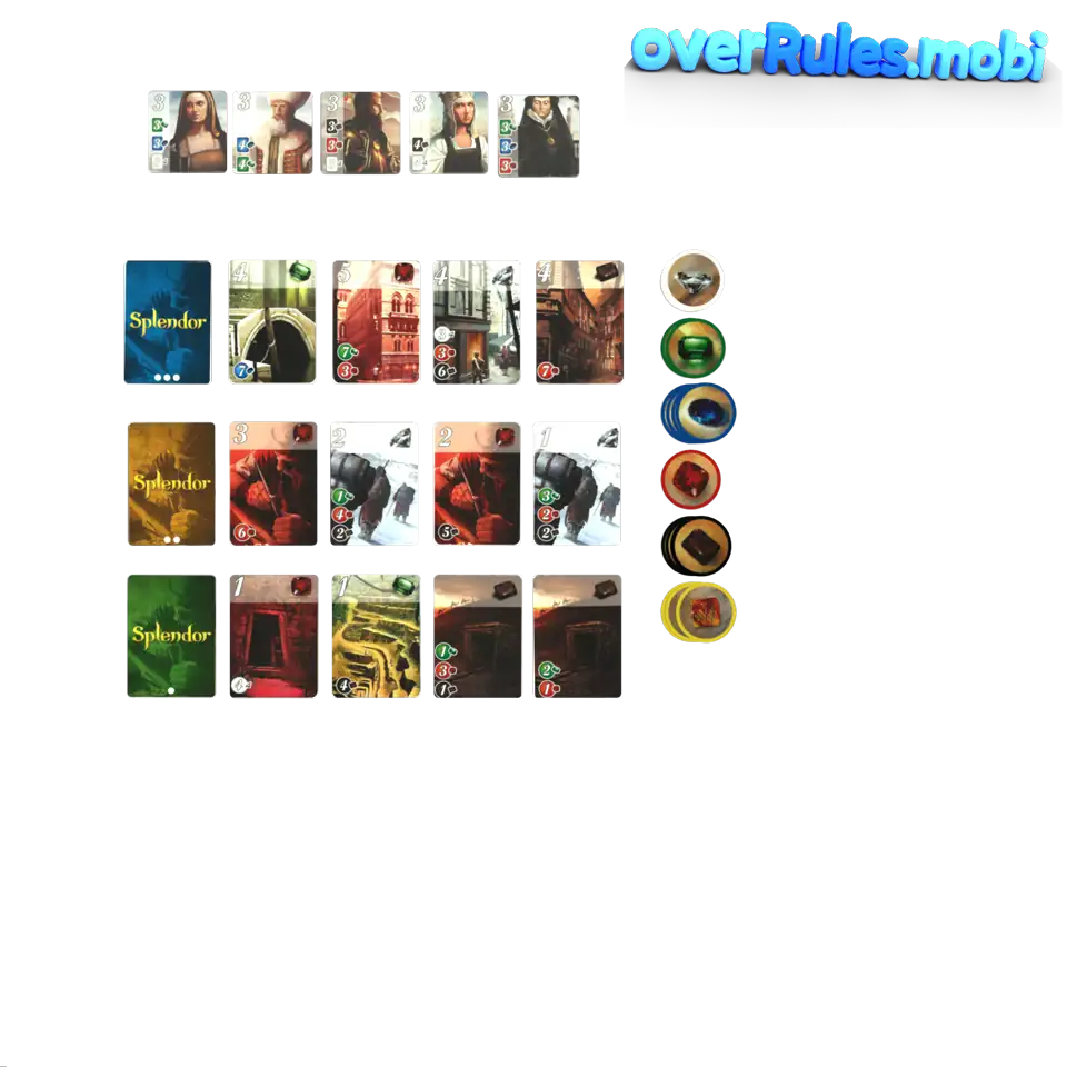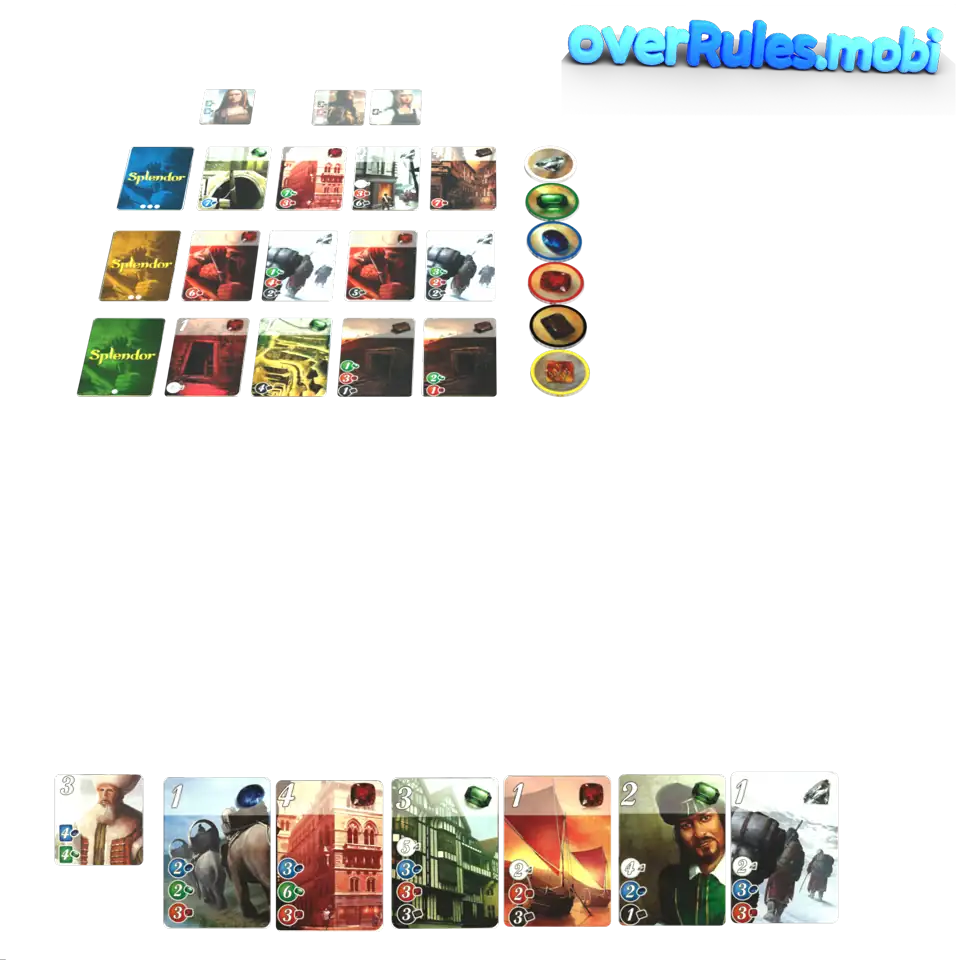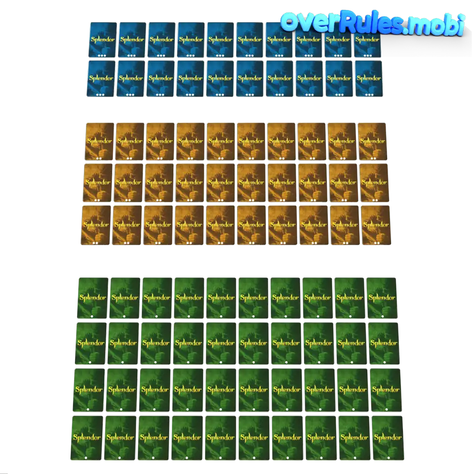 40 carte verdi - Livello 130 carte gialle - Livello 220 carte blu - Livello 3Le carte verdi sono economiche. Comprale all'inizioLe carte blu sono costose. Puoi permettertele più tardi![Animatioin inside]()