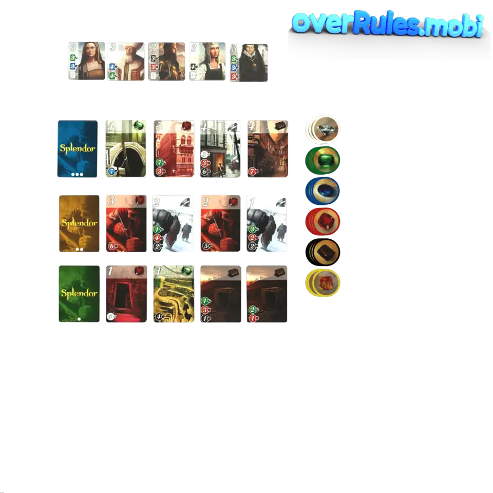 Ad esempio, 3 carte verdi e 3 carte bluSe hai abbastanza gettoni bonus per soddisfare il requisito, devi prendere il nobileNon paghi nulla per questo. Sono semplicemente punti extra