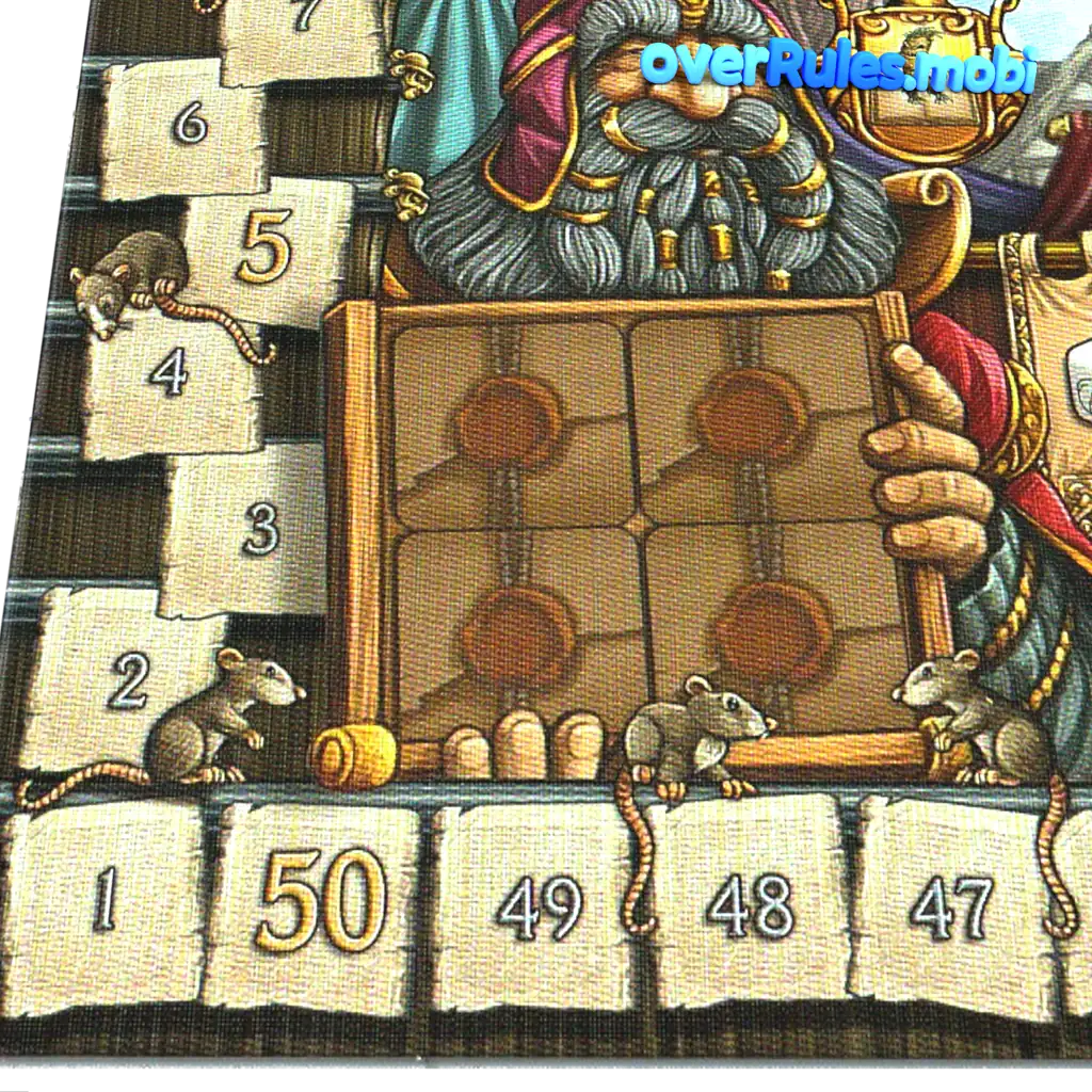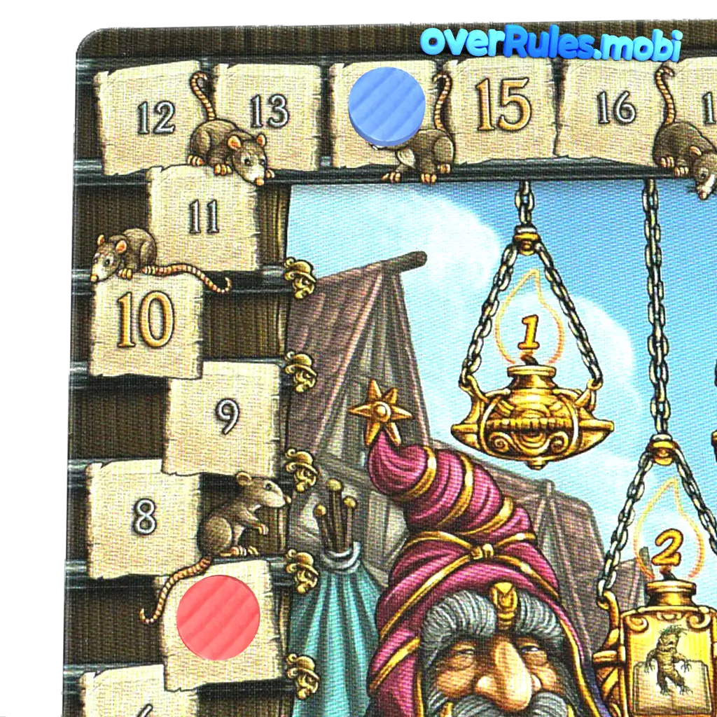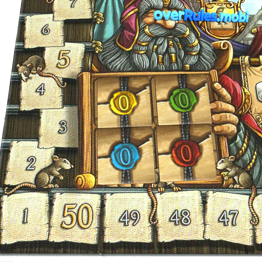 最初のプレイヤーはトップカードを読み、スコアトラックの横に置きます