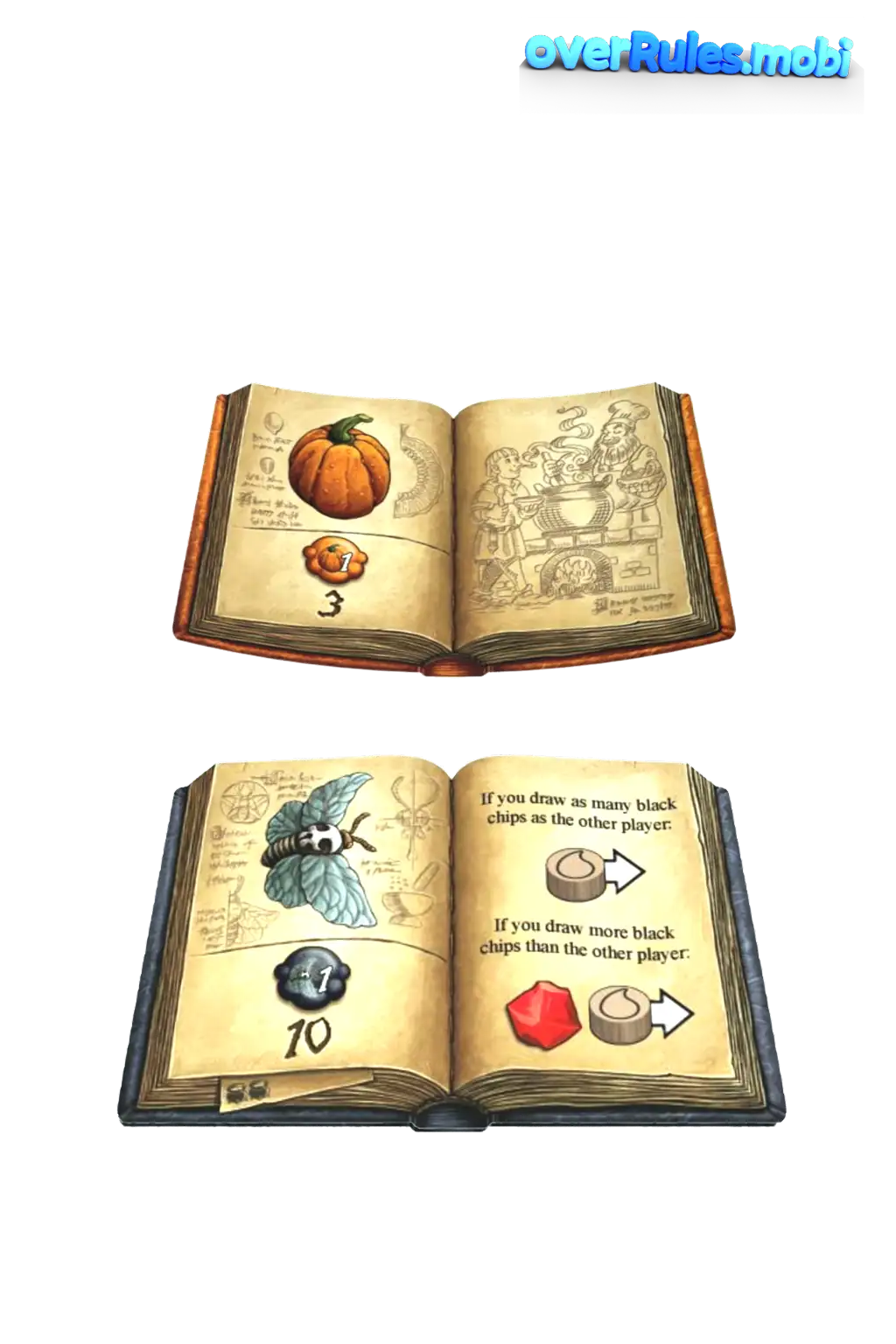 黒とオレンジの本は各ゲームで使用しますこれらは常にゲームの最初から使用しますプレイヤー数が記載された黒い蛾の本![Expand]()
