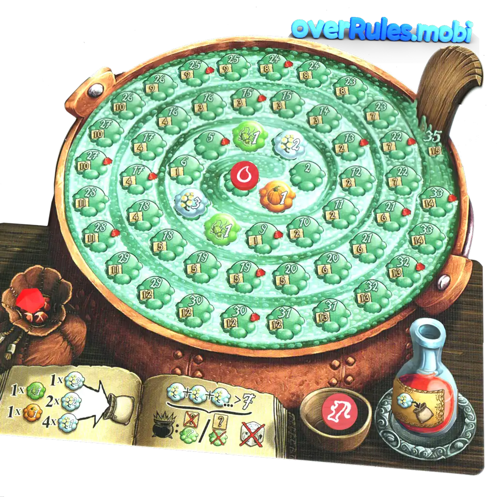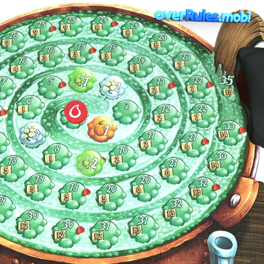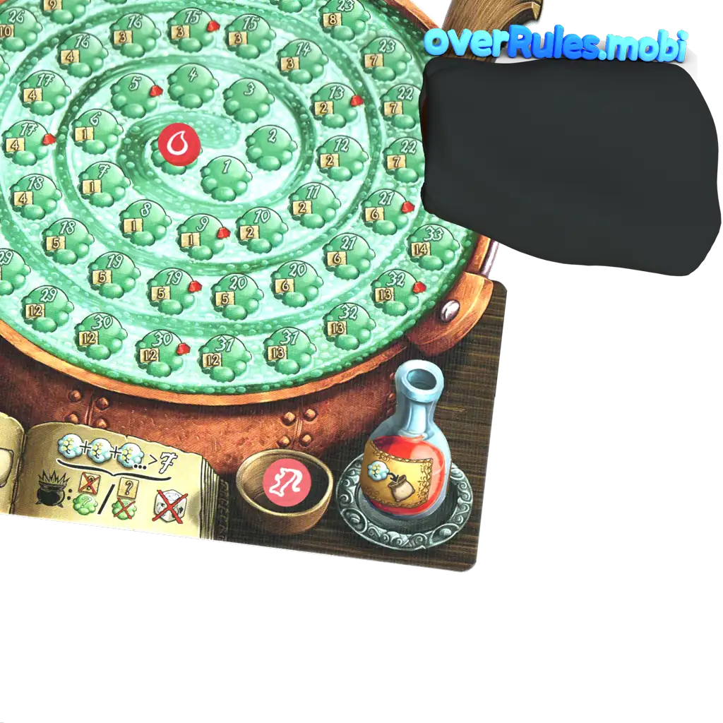 大釜が爆発していない場合のみ注意!いくつかのフィールドは同じ値です最も先のフィールドがカウントされます2人のプレイヤーが同点の場合、両方がダイスを振ることができます