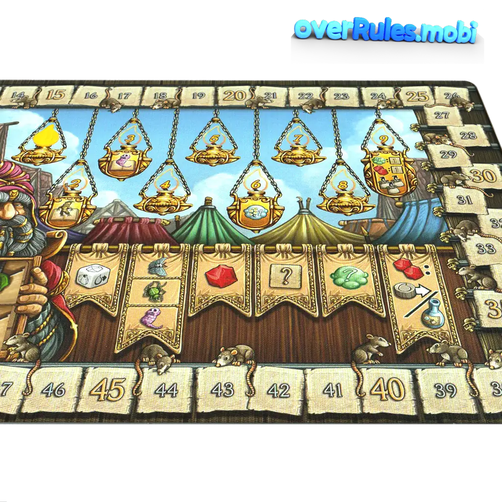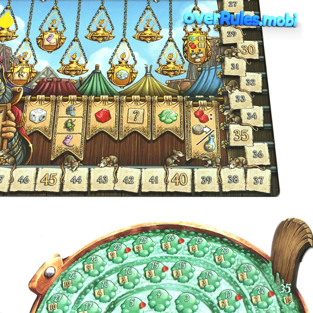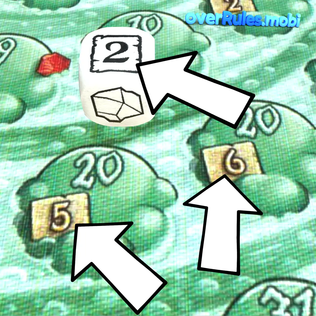 大釜が爆発していない場合のみ注意!いくつかのフィールドは同じ値です最も先のフィールドがカウントされます2人のプレイヤーが同点の場合、両方がダイスを振ることができます