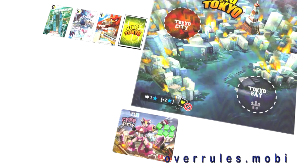 Mais de quatro? A Baía de Tóquio entra no jogoAs mesmas regras aplicam-se tanto para Tóquio City quanto para a Baía de TóquioOs monstros em Tóquio City e na Baía de Tóquio trabalham juntosOs monstros fora combatem ambos os monstros no tabuleiro de Tóquio![Expand]()